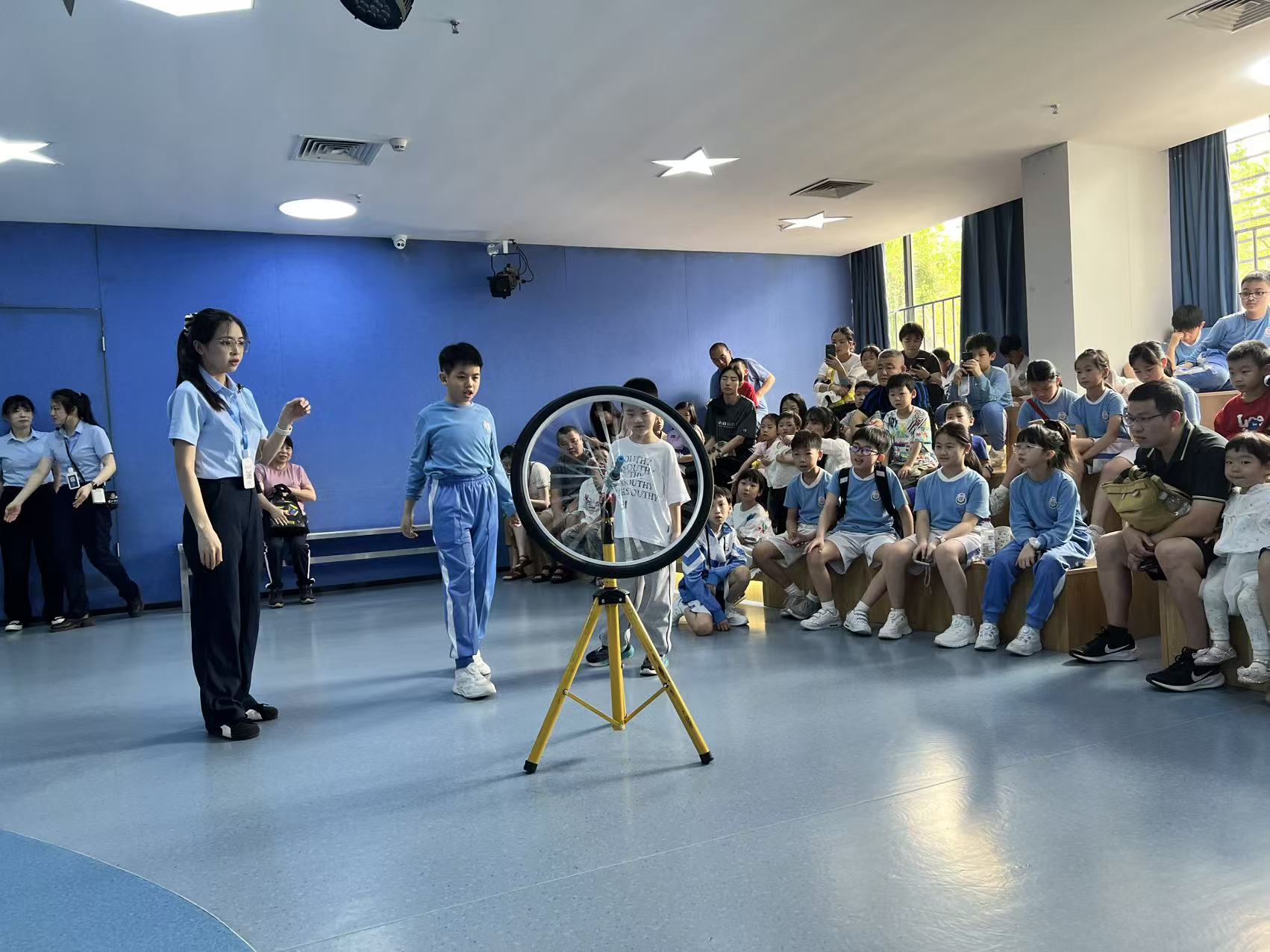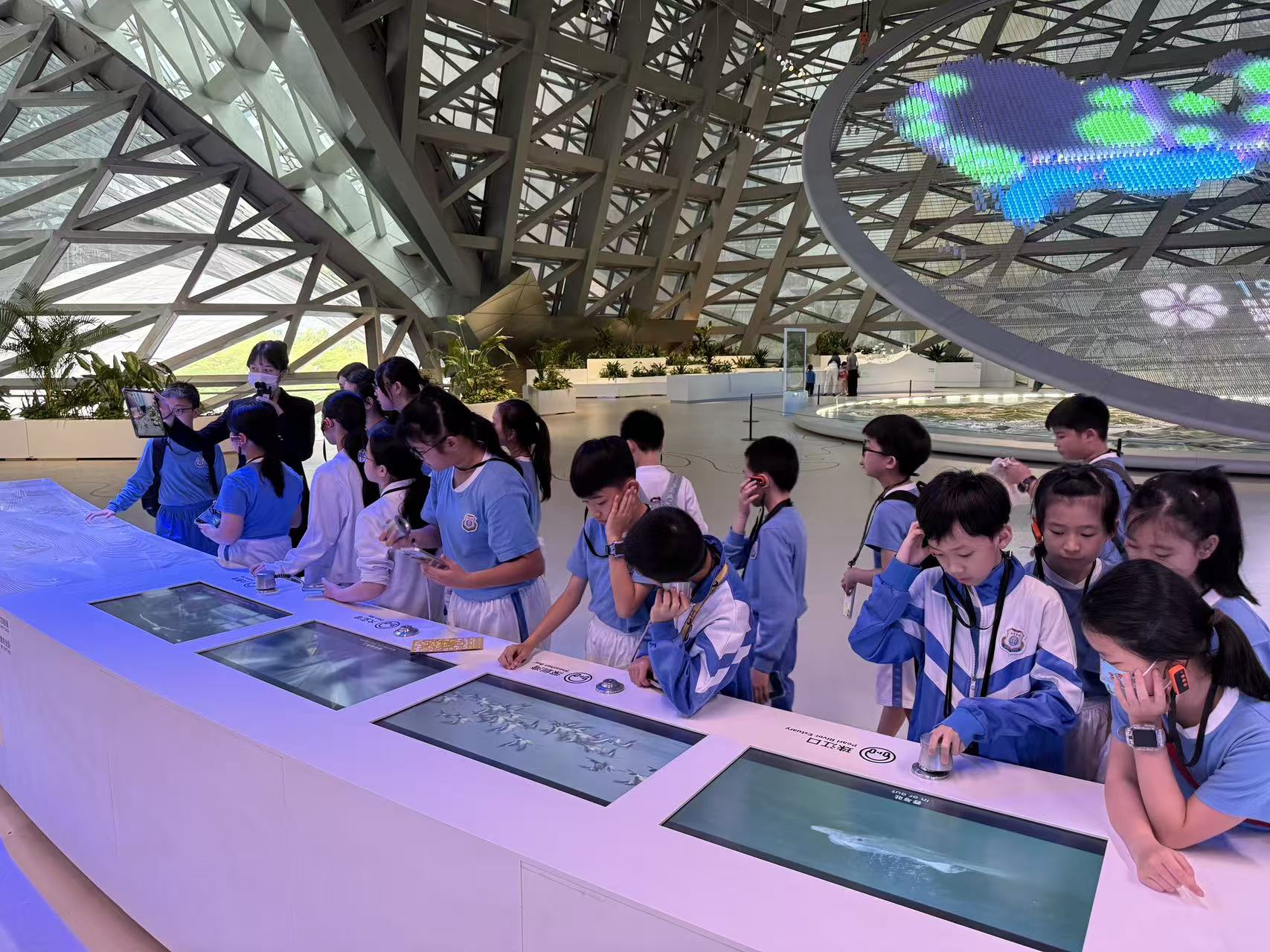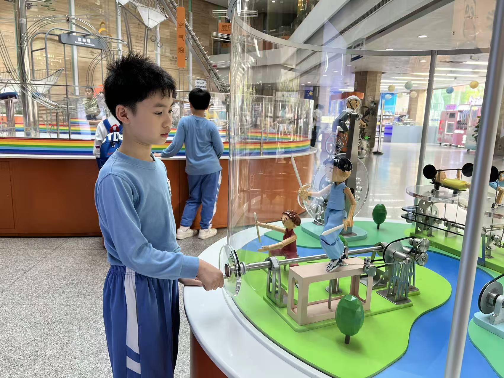 隨後前往深圳科學館,參與互動科學裝置、觀看 3D 教育影片與科學表演。在聲光電、力學、數學、人體科學等展區,學生對應日常「科學科」中所學的聲學原理、光的折射、牛頓運動定律、拋物線軌跡、聽覺頻率與生理科學,動手驗證公式、觀察現象、推導規律,把抽象知識轉化為直觀體驗,強化科學探究能力與邏輯思維。