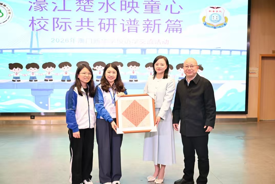 在武漢水果湖第一小學,進行數學科的觀課交流。四年級數學課《軸對稱》以黃鶴樓、長江大橋等地標為線索,引導學生以數學眼光發掘城市的對稱之美;課堂任務層層遞進,結合AI課堂、學習單與遊戲,讓學生深刻掌握「互相垂直、距離相等」的原理。觀課後,兩校教師進行評課交流,彼此分享教學設計與課堂實踐心得,兩地數學教學異曲同工,彼此借鑒、互相啟發。隨後,兩校互贈紀念品及刊物,欣賞該校非遺舞龍、花球啦啦操、獨輪車、舞蹈《草原歡歌》、藝術體操等精彩節目。